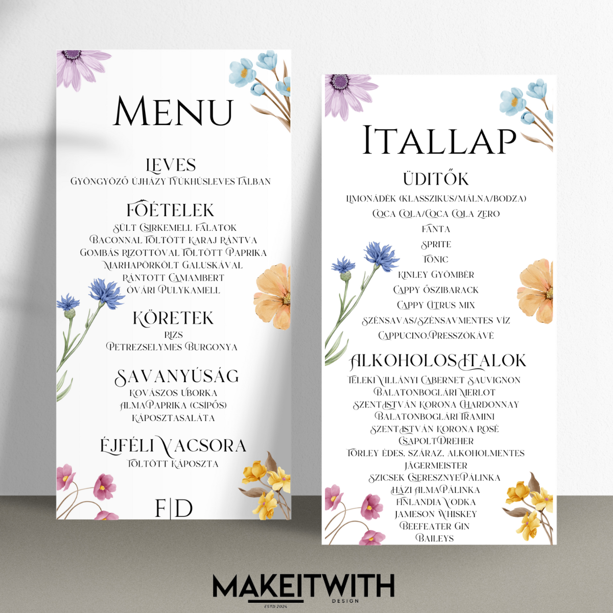 SZERKESZTÉS: A meghívó szövegét, az étlap és itallap szövegeit, valamint az ültető kártyák neveit kérjük, küldjétek el a info@makeitwith.hu e-mail címre.