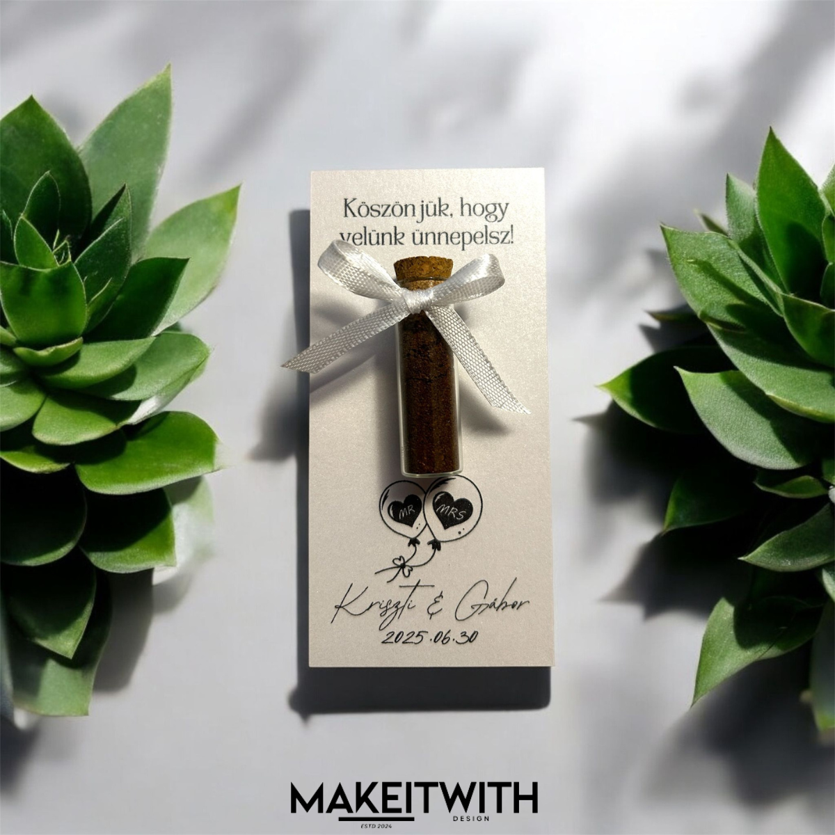 Tegyétek különlegessé a nagy napot egy személyre szabott köszönetajándékkal. Ez a kis üvegcsébe zárt finomság maradandó emlék lesz a vendégeitek számára.