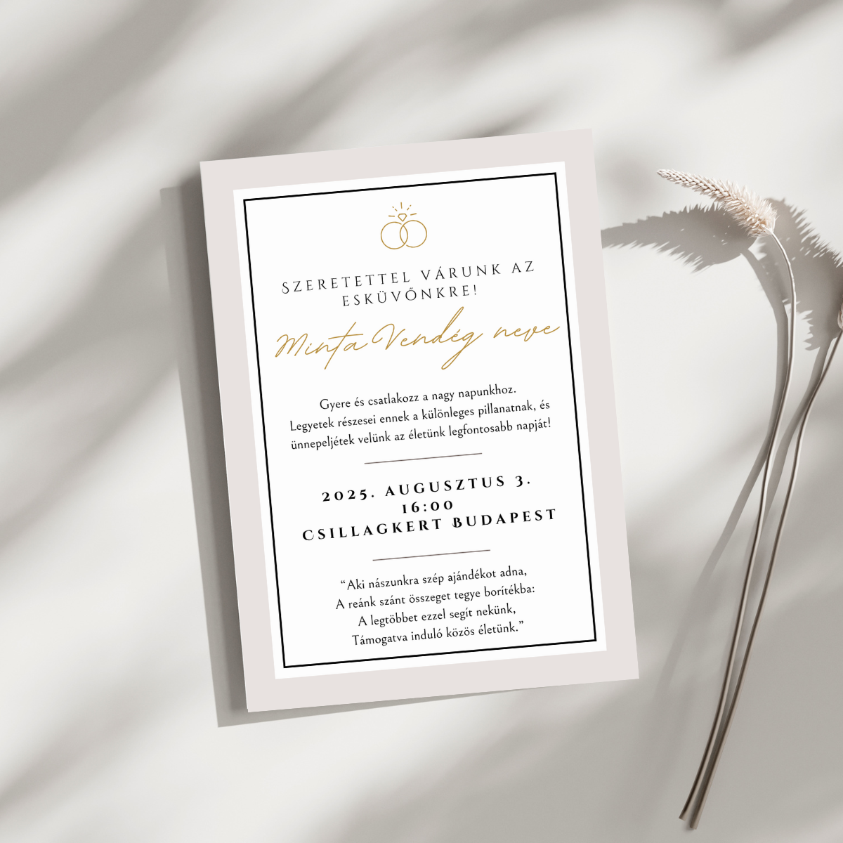 Személyes és elegáns meghívó, amely tökéletesen illik a nagy nap hangulatához!