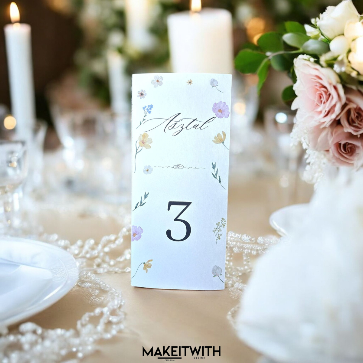Háromszög Menü/Asztalszám – Színes Virágos