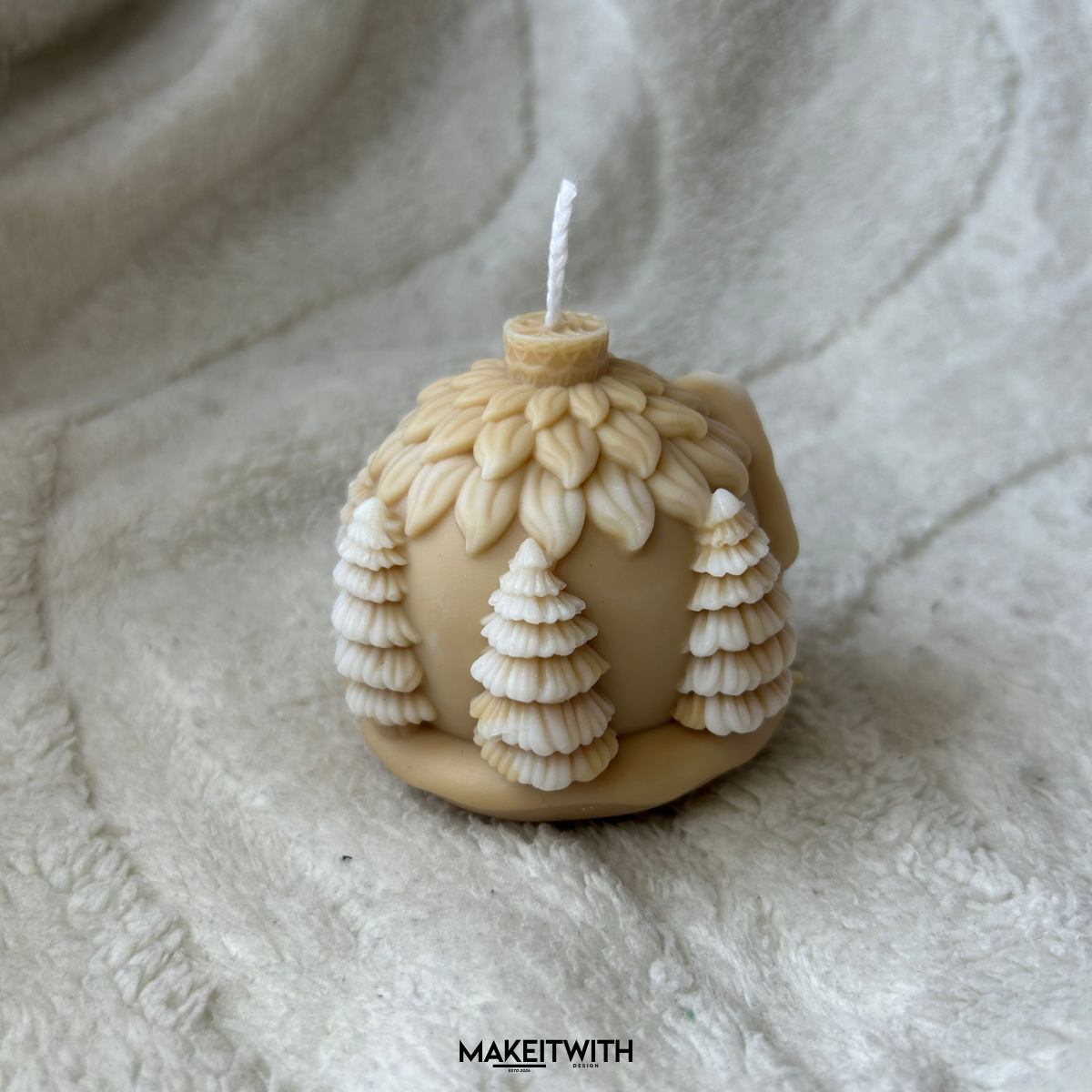 Ez a szójaviaszból készült gyertya bájos gömb formájú, rajta egy hangulatos házikó jelenik meg, fenyőerdővel körülvéve 🌲. Több illat közül választhatsz, így tökéletes ajándék 🎁 vagy dekoráció az otthonod ünnepi hangulatához. 100% természetes szójaviasz, tisztán ég és környezetbarát 🌱.