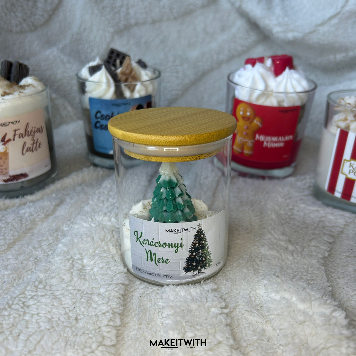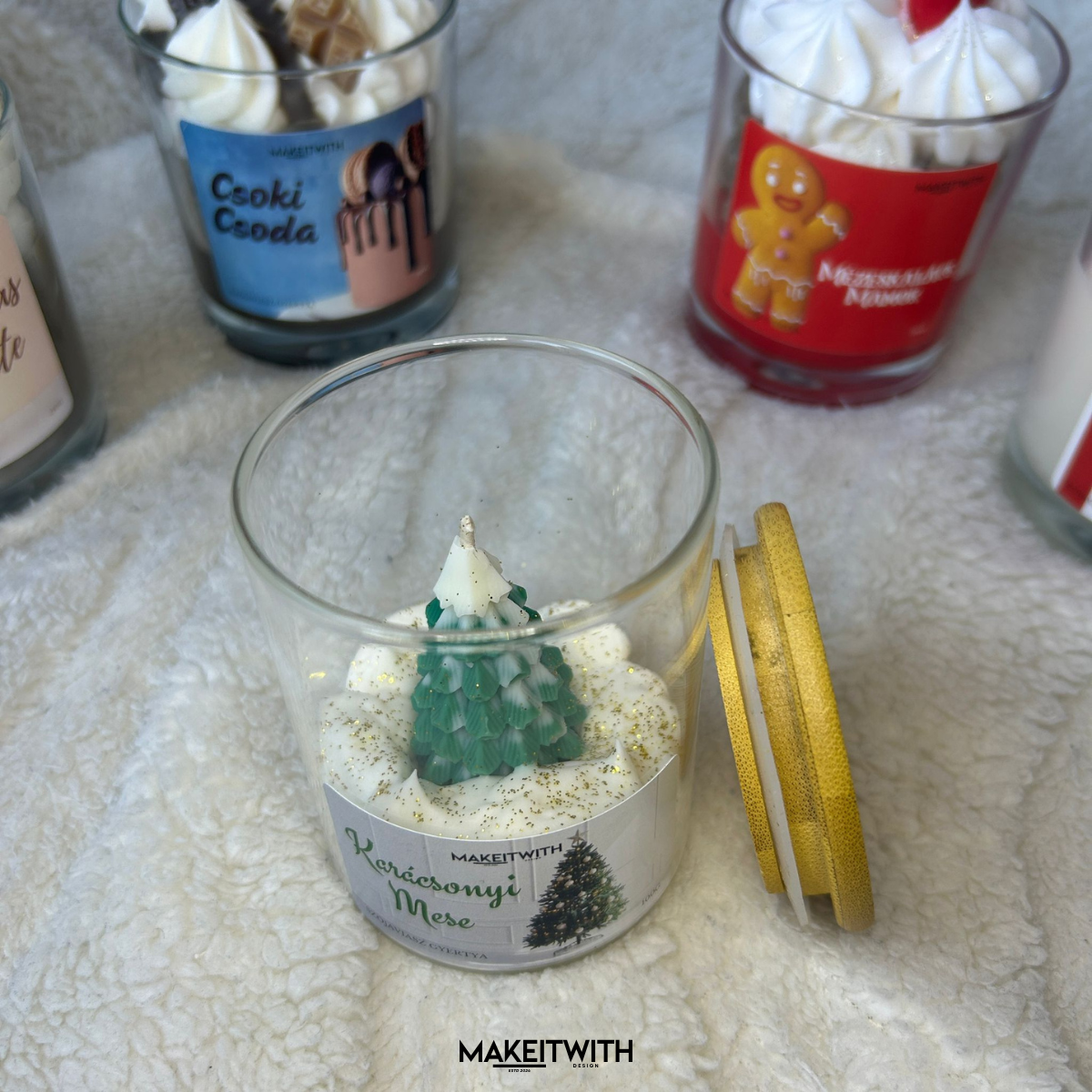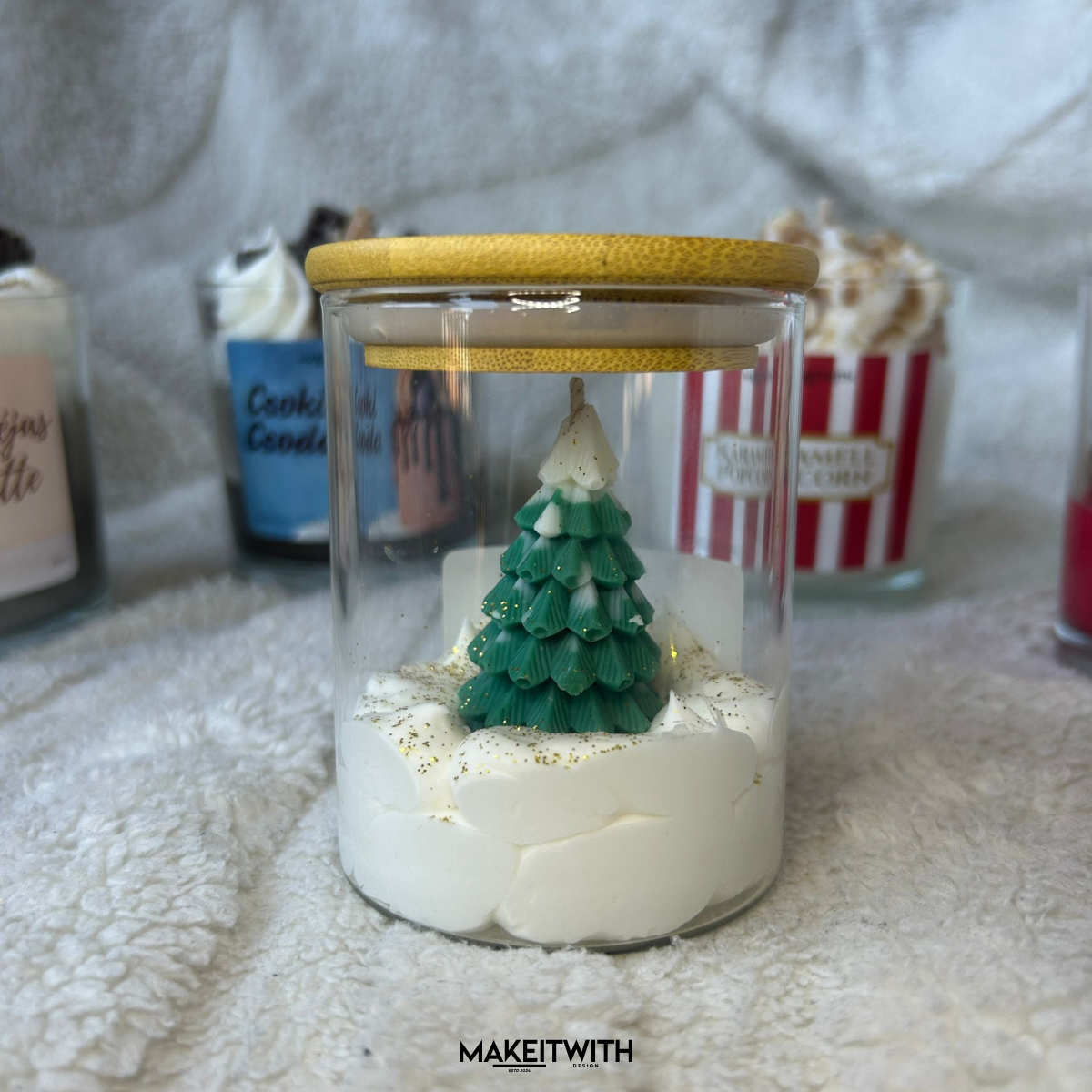 Ez a gyertya zárható üvegpohárban érkezik, így megőrzi illatát és hangulatát. A pohár közepén egy apró karácsonyfa áll, mintha friss hó borítaná a körülötte lévő tájat. Illata a frissen vágott karácsonyfa jeges, fenyőillatát idézi – tiszta, friss és ünnepi.