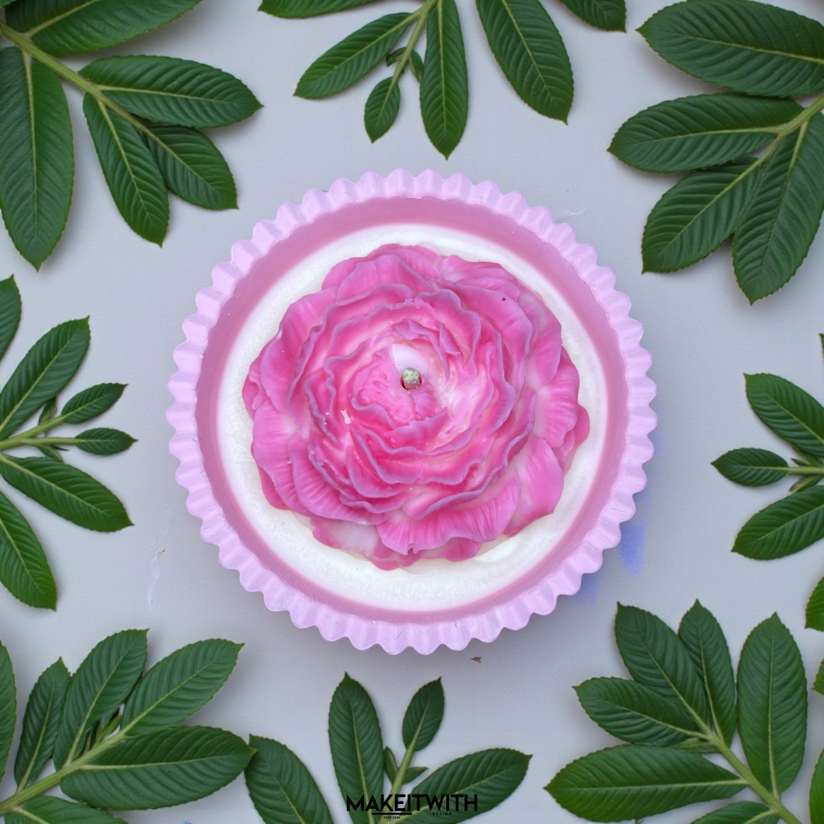 ✔ Nagy bajorózsa dísz a tetején – szójaviaszból készült, látványos és különleges részlet