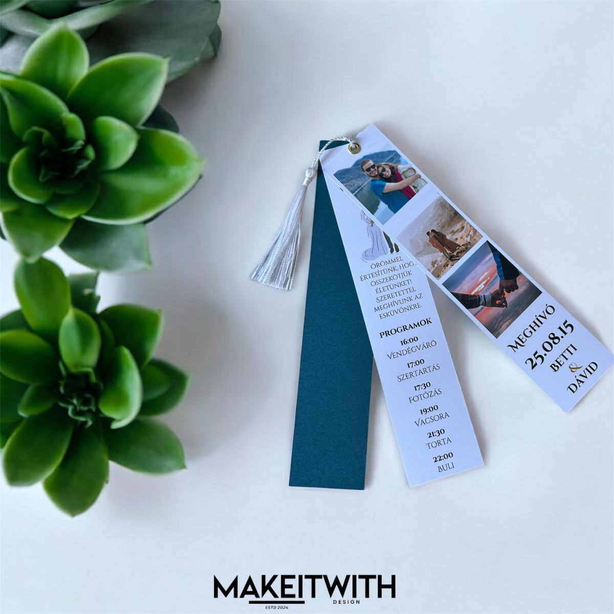 Ez a háromoldalas esküvői meghívó tökéletes választás azok számára, akik valami igazán egyedit keresnek a nagy napra.