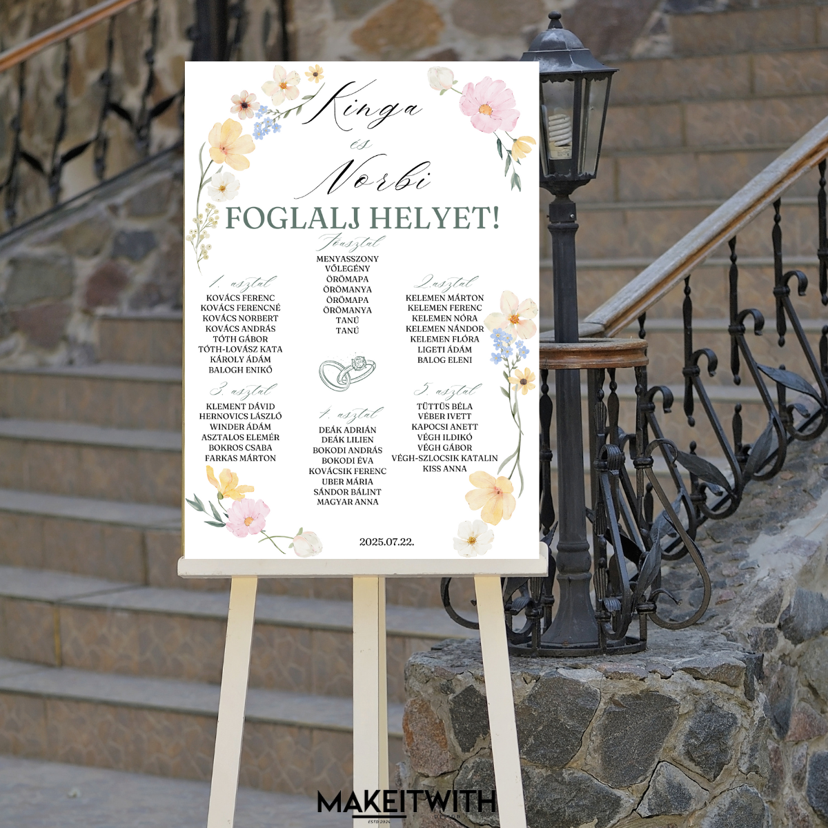 Kérjük, hogy az asztalok nevét vagy sorszámát, valamint a hozzátartozó neveket küldjétek el nekünk az info@makeitwith.hu email címre! 📧